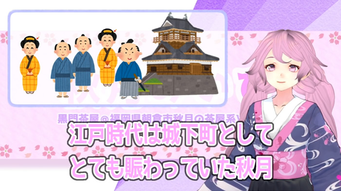 黒門茶屋出身の茶屋系Vtuber。 黒門茶屋の最新情報はもちろん、朝倉や秋月のおすすめも紹介していきます。 好きなものは城下町巡りと和菓子。 いろいろなゲームプレイ配信も行っています。 ぜひYouTube黒門茶屋チャンネルを御覧くださいませ。